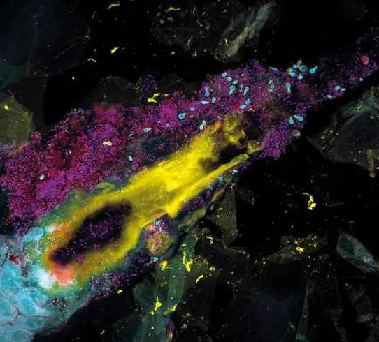 毛囊中的細(xì)菌(粉色)和酵母(青色)