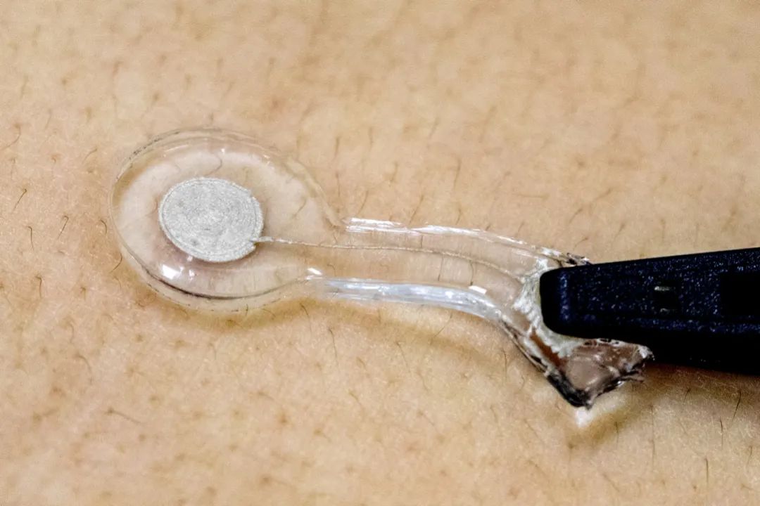 團隊人員還利用這套方法制備了厘米尺寸的全水凝膠心電圖電極。由于水凝膠基質(zhì)和墨水良好的柔性,水凝膠電極的電子導電部分可以直接很好地貼敷在人體皮膚表面,從而可以有效的降低阻抗,使得3D打印電極展現(xiàn)出比傳統(tǒng)商用電極更高的分辨率。